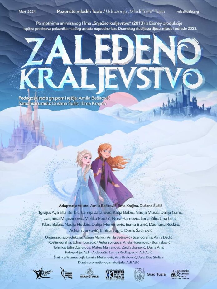 U okviru programa „20. Dana Mladih Tuzle“ kojim se u martu 2024. godine obilježava dvadeseta godišnjica postojanja i rada Udruženja „Mladi Tuzle“ i Pozorišta mladih Tuzle, danas će biti izvedena premijera predstave za djecu „Zaleđeno kraljevstvo“ .