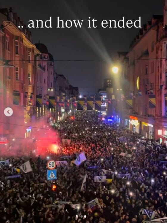 Druga fotografija nastala je sinoć, kod Vječne vatre u Sarajevu, gdje se više od 100 hiljada navijača okupilo kako bi dočekali Zmajeve.
