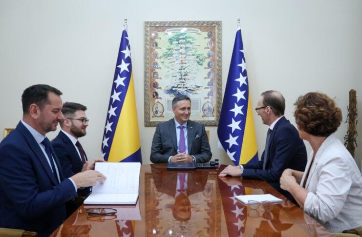 Član Predsjedništva Bosne i Hercegovine dr. Denis Bećirović sastao se s ambasadorom Republike Austrije u BiH Georgom Diwaldom. Tokom razgovora razmotrena je aktuelna politička situacija u Bosni i Hercegovini i regiji, kao i mogućnosti jačanja bilateralnih odnosa između dvije države.
