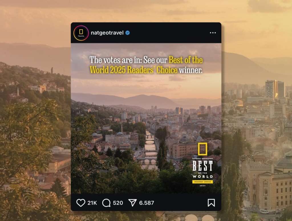 – Sretni smo, ponosni i izuzetno zadovoljni izborom čitalaca prestižnog svjetskog magazina National Geographic Travel, koji su Sarajevo pozicionirali na svjetski vrh turističke destinacije za 2025. godinu – ističu iz TZ KS.