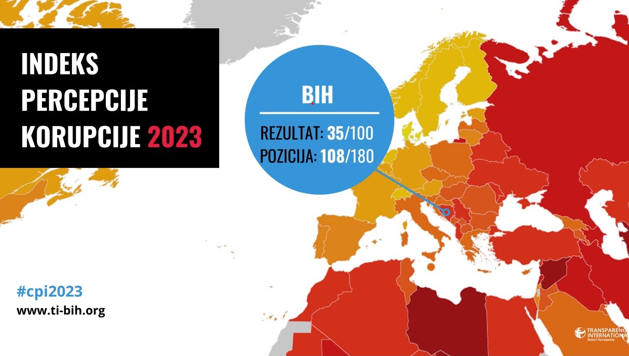 Bosna i Hercegovina zauzima najgore mjesto u regionu po ovogodišnjem Indeksu percepcije korupcije koji je objavio Transparency International (TI), a postala je i druga najlošije pozicionirana zemlja u Evropi kada je u pitanju stanje korupcije u zemlji. Samo Rusija ima lošiji rezultat od BiH, koja ove godine ima ocjenu 35, na skali od 0 (najgori) do 100 (najbolji rezultat). Iako je BiH dobila za jednu ocjenu više nego prošle godine, nazaduje u odnosu na sve prethodne godine, te ovaj rezultat i dalje drži BiH na dnu regiona i na 108 mjestu u svijetu od 180 zemalja.