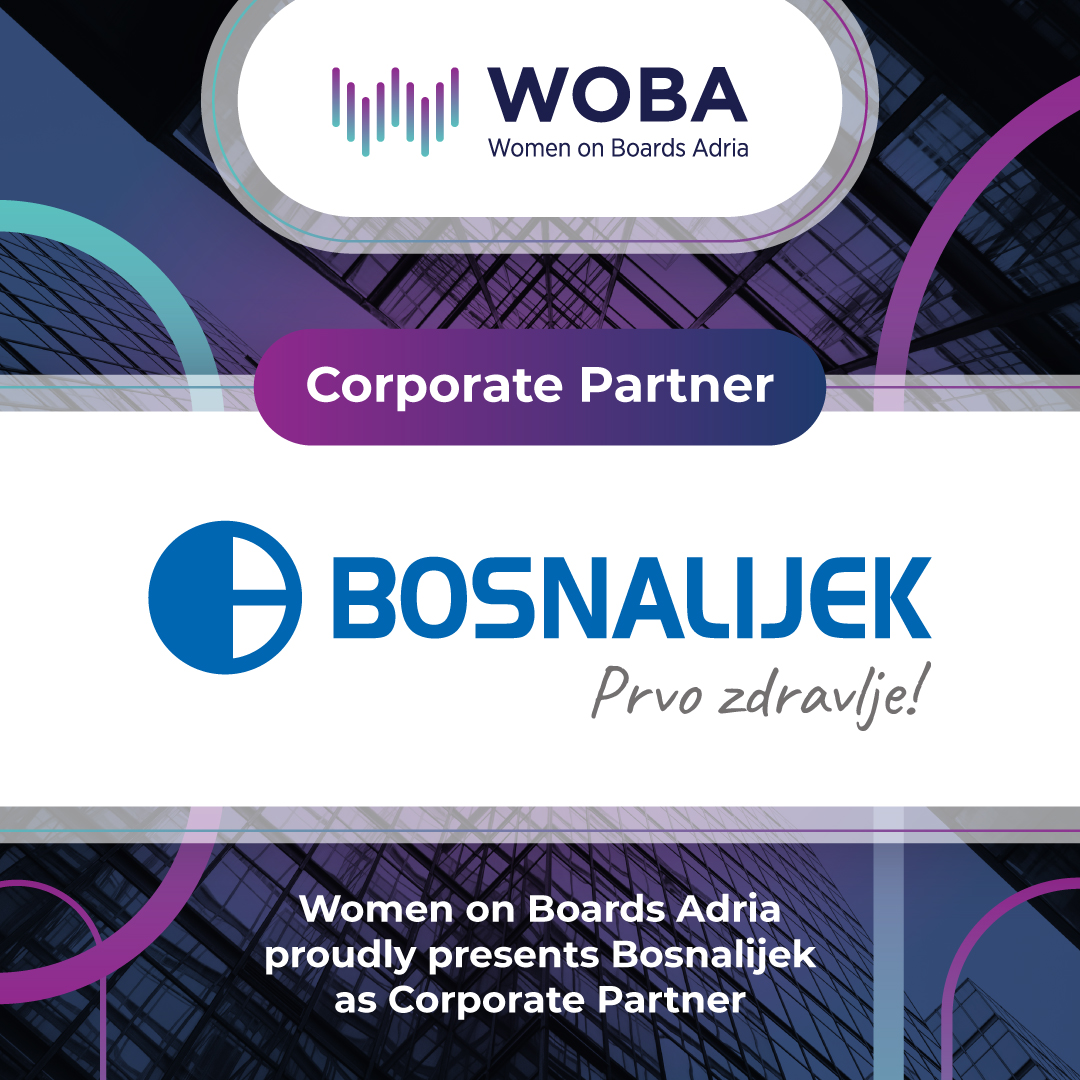 Bosnalijek, vodeća farmaceutska kompanija u Bosni i Hercegovini, postao je korporativni partner organizacije Women on Boards Adria (WOBA), regionalne inicijative koja promiče veću zastupljenost žena na upravljačkim i nadzornim pozicijama u kompanijama. Ova saradnja predstavlja još jedan korak u posvećenosti Bosnalijeka promoviranju rodne ravnopravnosti i podršci liderstvu žena u poslovnom sektoru.
