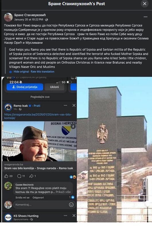 – Pomaže bog Ramo vidiš da postoji Republika Srpska i Srpska milicija Republike Srpske policija Srebrenice je u kratkom roku otkrila i indefikovala teroristu koji je je*o majku Srpsku i viko da ne postoji Republika Srpska sram te bilo Ramo ko pobi Srbe malu decu,trudne žene i Stare ljude na pravoslavni Božić u Kravicama kod Bratunca i okolnim Selima Naser Orić i Muslimani, napisao je Stanivuković.