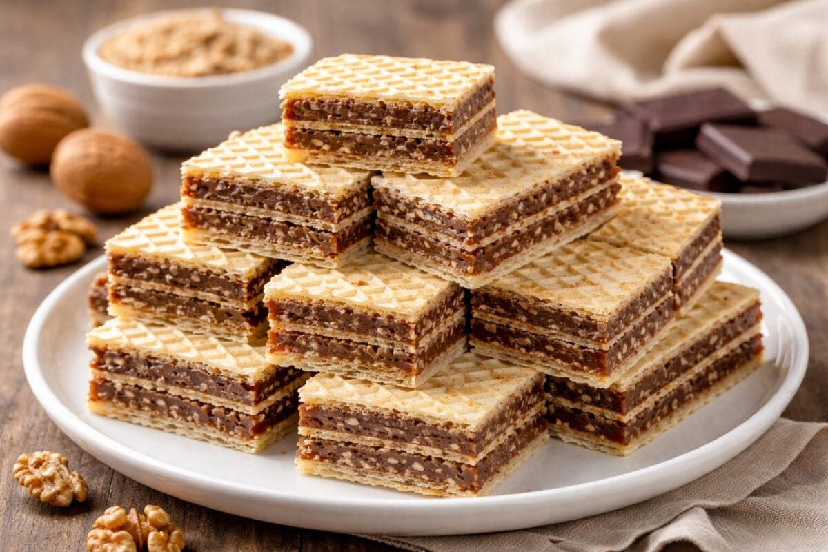 Domaće tradicionalne oblatne jedan su od onih kolača koji se vežu za porodična okupljanja, praznike i stare kuharice, jednostavne su za pripremu, ne traže pečenje i gotovo uvijek uspiju. Ovaj recept daje sočne, mekane oblatne s bogatim čokoladnim punjenjem koje se lijepo reže i ne curi.