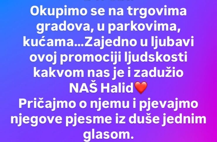 „Nedjelja u 17 sati, cijeli svijet neka zna da je otišao naš Halid“, poručio je Bešlagić, uz apel građanima da dijele objavu i pridruže se ovoj simboličnoj gesti jedinstva i poštovanja.