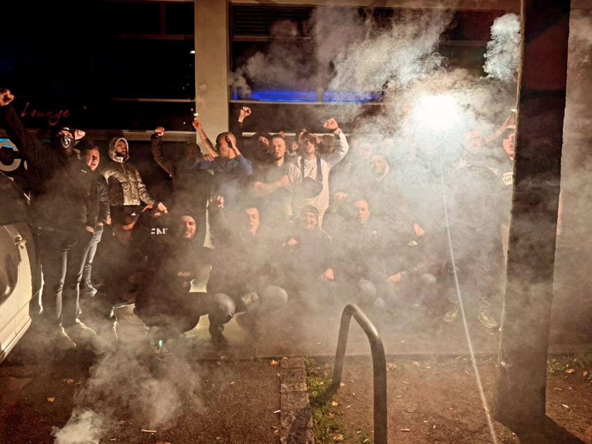 Među pristiglim grupama nalazi se i pedesetak navijača iz Tuzle. Dočekali su ih Belaj Boysi, koje predvodi bh. reper Damir Delić Pireli, Tuzlak koji živi i radi u Beču a koji je nedavno objavio pjesmu „Svjetski prvak“. Zajedno su privukli pažnju i efektnom bakljadom, zbog koje je policija nakratko intervenisala, ali se okupljanje nastavilo u navijačkoj atmosferi.