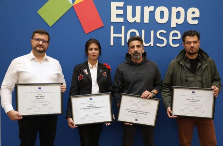 U Europe House danas su uručene EU nagrade za istraživačko novinarstvo u Bosni i Hercegovini za 2024. godinu, priznanja koja ističu najbolje istraživačke priče objavljene u prethodnoj godini. Ceremoniju je organizovala Thomson Media, uz podršku Evropske unije.