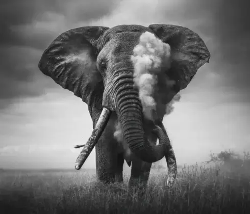 Za to je potrebno strpljenje i posebna perspektiva – često fotografiše iz niskog ugla, kako bi slon izgledao još monumentalnije. Neke od najdojmljivijih fotografija snimio je u crno-bijeloj tehnici.