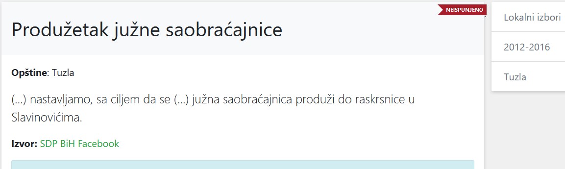 Još jedno obećanje iz predizborne kampanje tuzlanskog SDP-a iz 2012. godine, naravno neispunjeno (podaci portala istinomjer) ponovo je aktuelizirano.