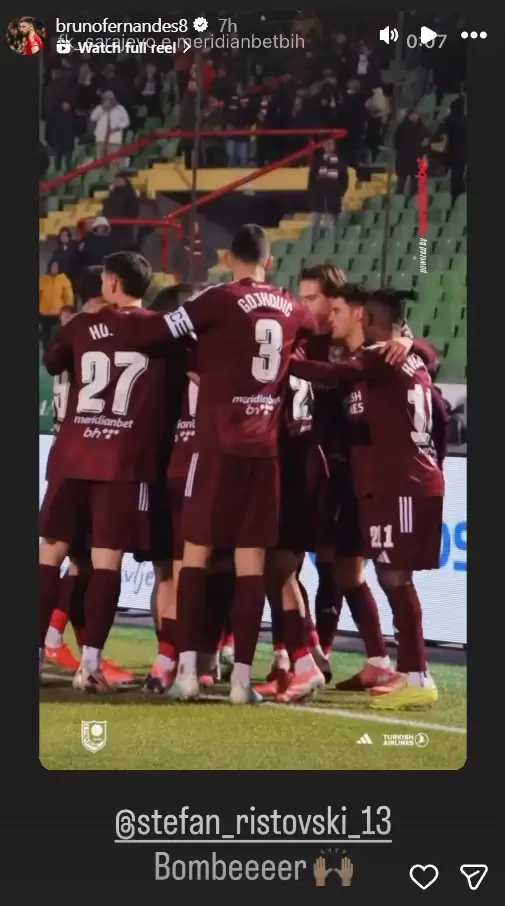 Njegov pogodak nije prošao nezapaženo ni u Manchesteru. Naime, Bruno Fernandes (31) podijelio je Ristovskijev gol na svom Instagram Storyju uz kratku poruku: “Bombeeer”.