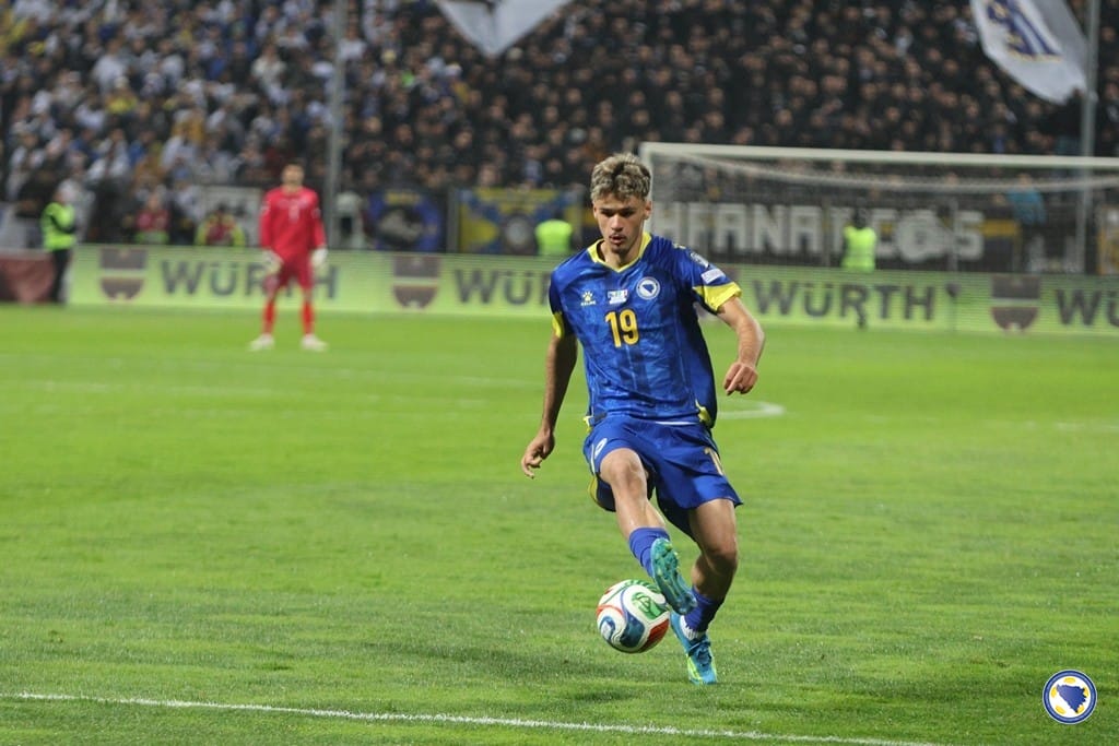Osamnaestogodišnji fudbaler podijelio je dvije fotografije, jednu iz ranog perioda svog odrastanja i drugu u dresu reprezentacije BiH, uz emotivnu poruku o odricanju, radu i ljubavi prema domovini.