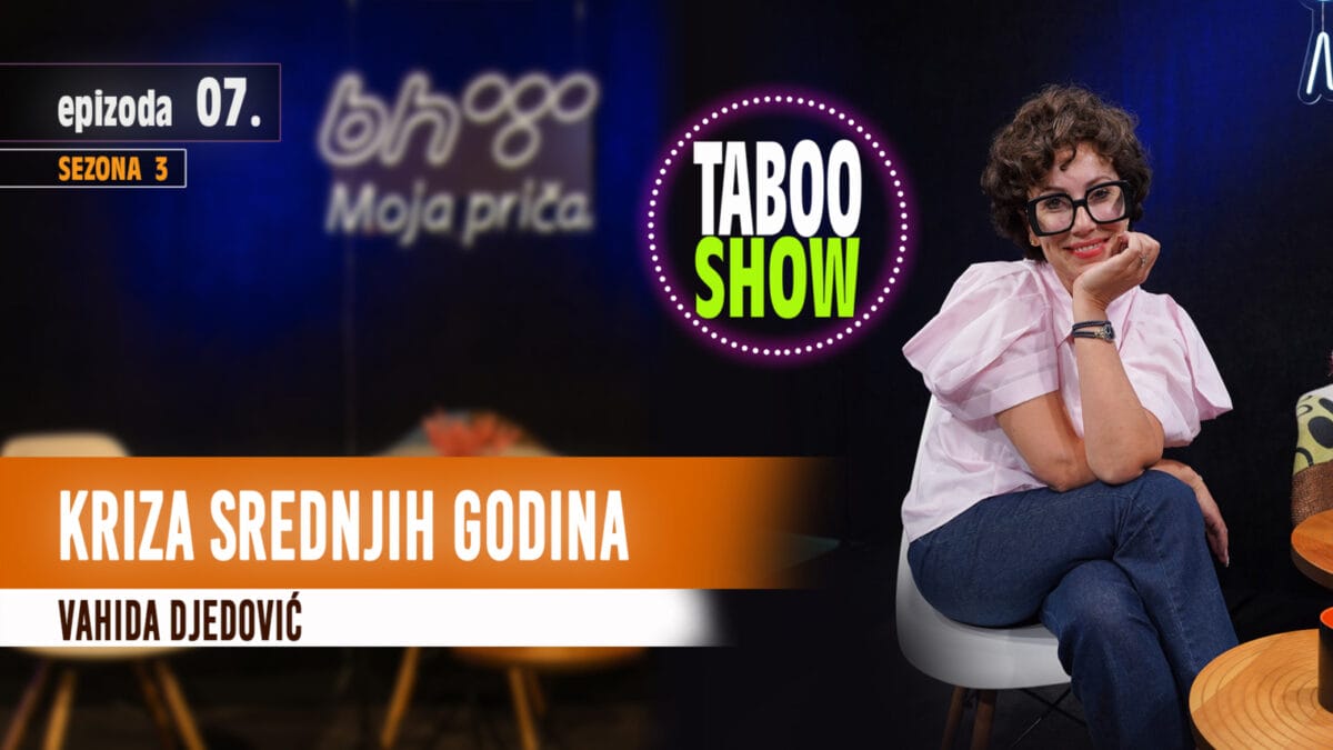 Kriza srednjih godina tema je nove epizode Taboo Showa. Psihoterapeutkinja Vahida Djedović govori o emocionalnim promjenama, pritiscima i načinima da pronađemo novi smisao i mir. Epizodu možete gledati večeras od 20:00 sati.