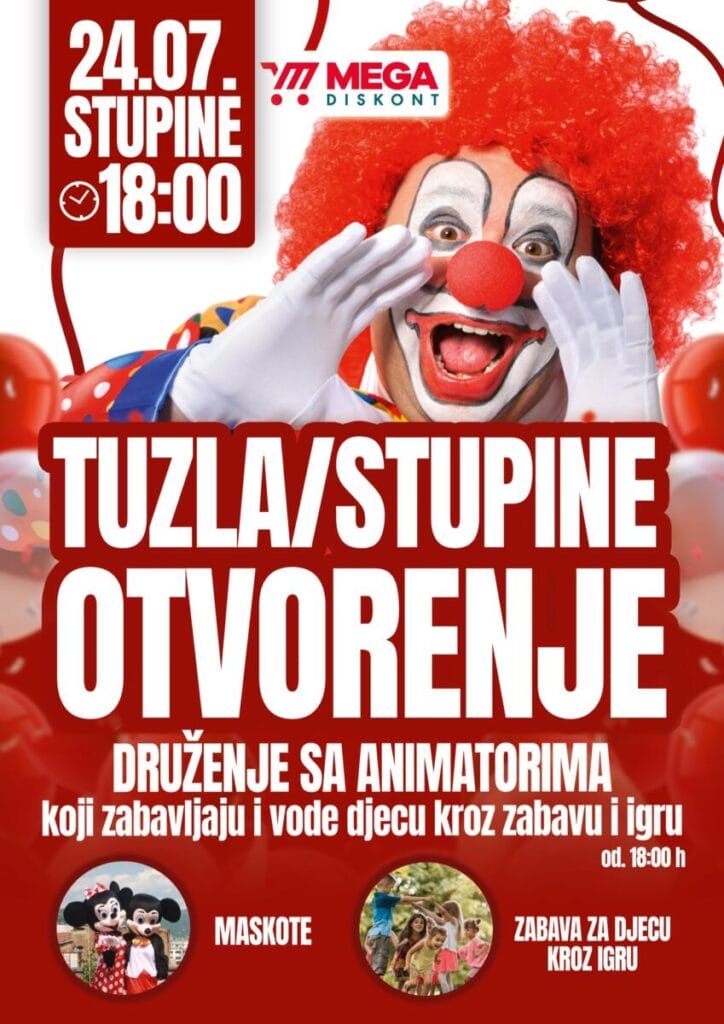 U četvrtak, 24. jula, u 09:00 sati, MEGA Diskont svečano otvara vrata svoje nove prodavnice u naselju Stupine, na adresi Mehmedalije Maka Dizdara F1 C4 Blok (iza hotela Tuzla – Grande).