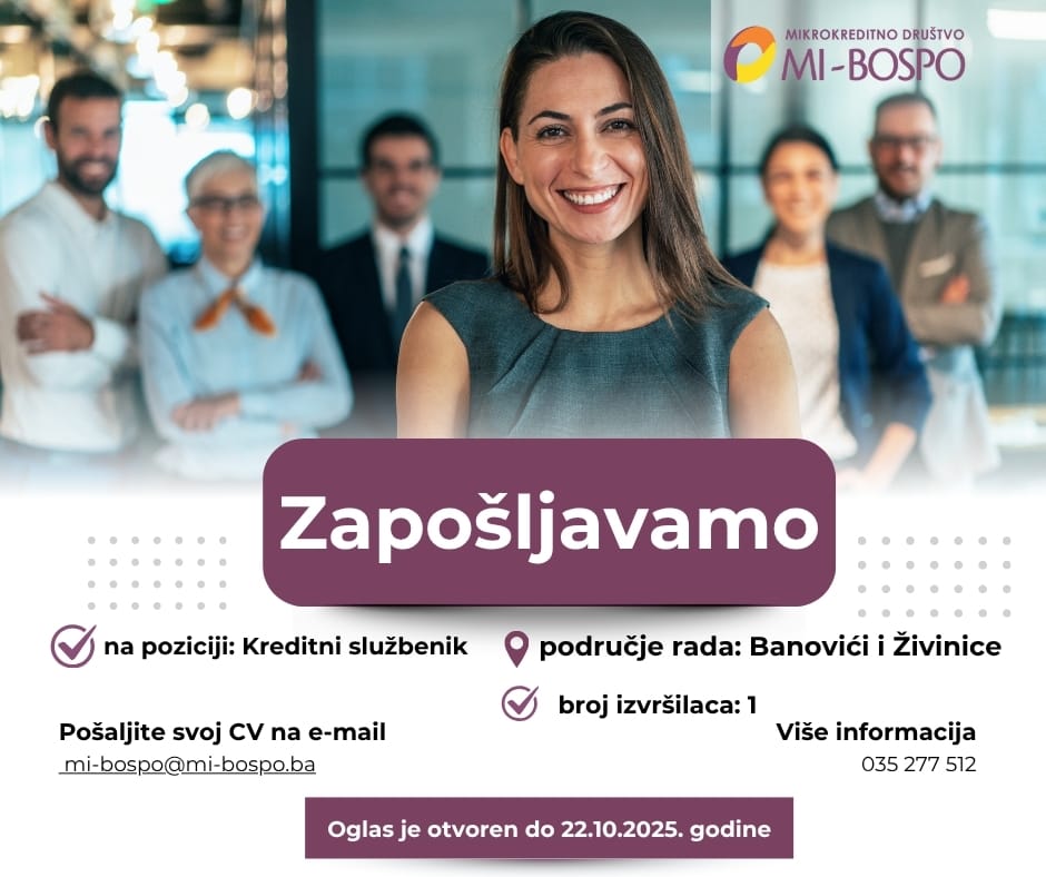 Mikrokreditno društvo MI-BOSPO zapošljava i nudi karijeru po vašoj mjeri: