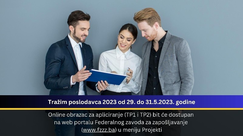 Federalni zavod za zapošljavanje krajem mjeseca u okviru programa sufinansiranja zapošljavanja i samozapošljavanja provodit će Javni poziv za mjeru Tražim poslodavca.
