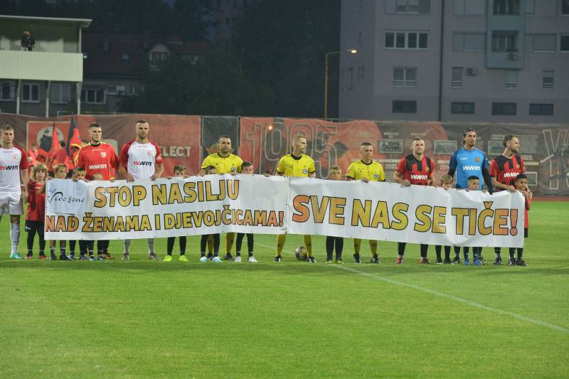 Na utakmici Sloboda - Jedinstvo u drugom kolu Prve lige FBiH, fudbaleri su izašli s transparentom ''Stop nasilju nad ženama i djevojčicama - Sve...