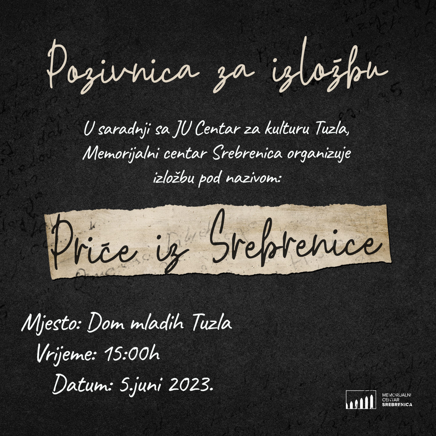 Putujuća izložba “Priče iz Srebrenice” bit će otvorena danas u 15:00 h, u prostorijama Doma mladih / Centar za kulturu Tuzla. Izložbu realizira Memorijalni...