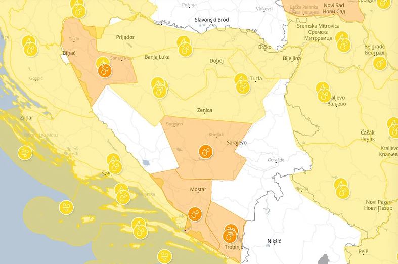 RTV SLON - Federalni hidrometeorološki zavod izdao je narandžasto upozorenje za sutra zbog obilnih padavina i jakih udara vjetra. Kako su rekli, očekuju se padavine između 30 i...