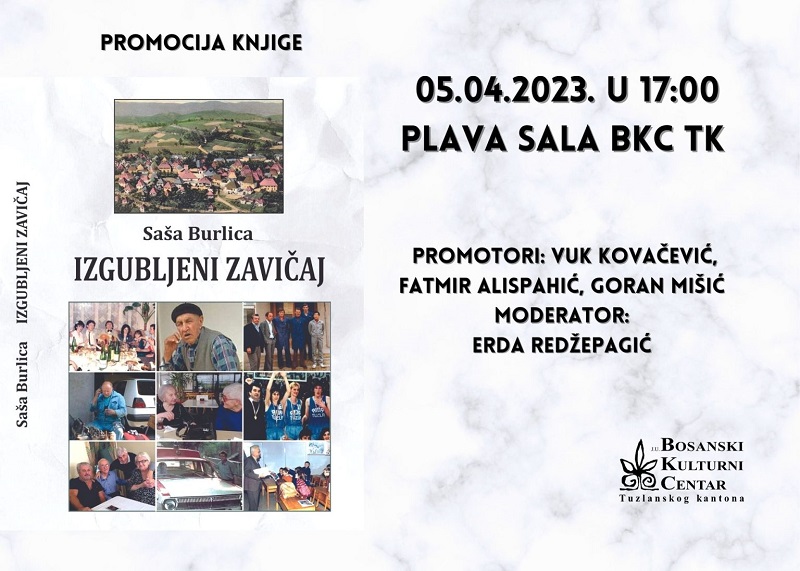 Promocija knjige “Izgubljeni zavičaj”, autora Saše Burlice bit će promovisana u JU Bosanski kulturni centar TK u Tuzli, u srijedu 5. aprila 2023. godine. O...