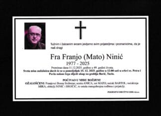 Poznat je termin posljednjeg ispraćaja fra Franje Ninića, koji je preminuo 11. decembra 2025. godine u 49. godini života. Kako je navedeno, sveta misa...