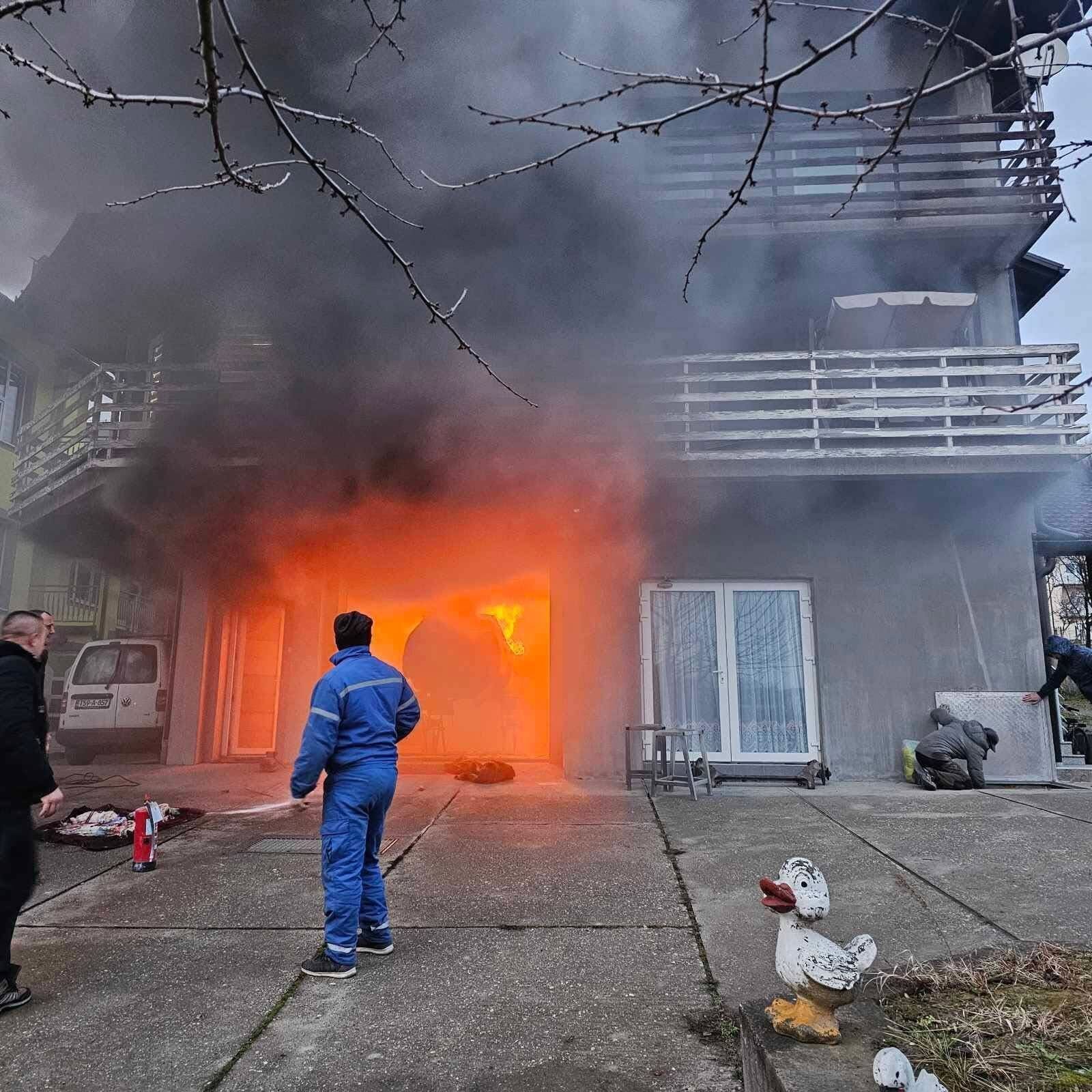 Prema dostupnim informacijama, požar je navodno izbio prilikom varenja na automobilu u radionici koja se nalazi u sklopu kuće.