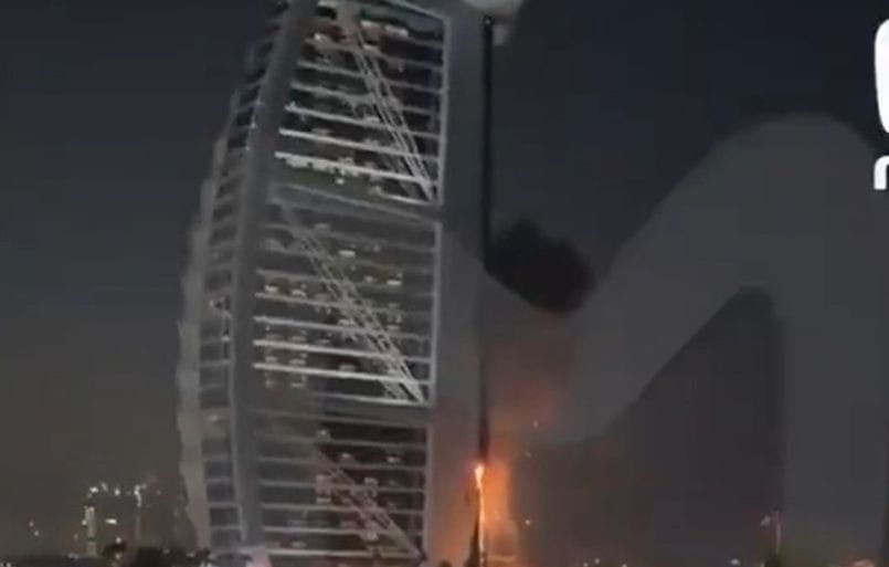 Luksuzni hotel Burdž al-Arab u Dubaiju zahvatio je požar nakon što su, prema navodima vlasti, krhotine presretnutog drona pogodile njegovu fasadu. Bespilotna letjelica, za koju se sumnja da je došla iz Irana, presretnuta je, ali su njeni ostaci izazvali vatru na nekoliko spratova jednog od najprepoznatljivijih objekata u gradu.