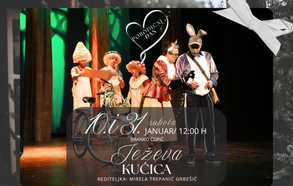 Predstava „Ježeva kućica“, rađena prema tekstu Ježeva kućica autora Branka Ćopića, bit će izvedena u Narodno pozorište Tuzla 10. i 31. januara, s početkom u 12 sati.