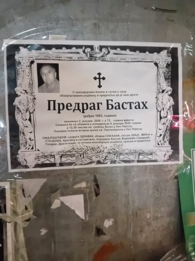 U Univerzitetskom kliničkom centru u Banjoj Luci preminuo je Predrag Bastah, presuđeni ratni zločinac, koji je izdržavao zatvorsku kaznu za ratne zločine počinjene u Vlasenici, dok je bio na izdržavanju kazne u zatvoru u Vojkovićima.