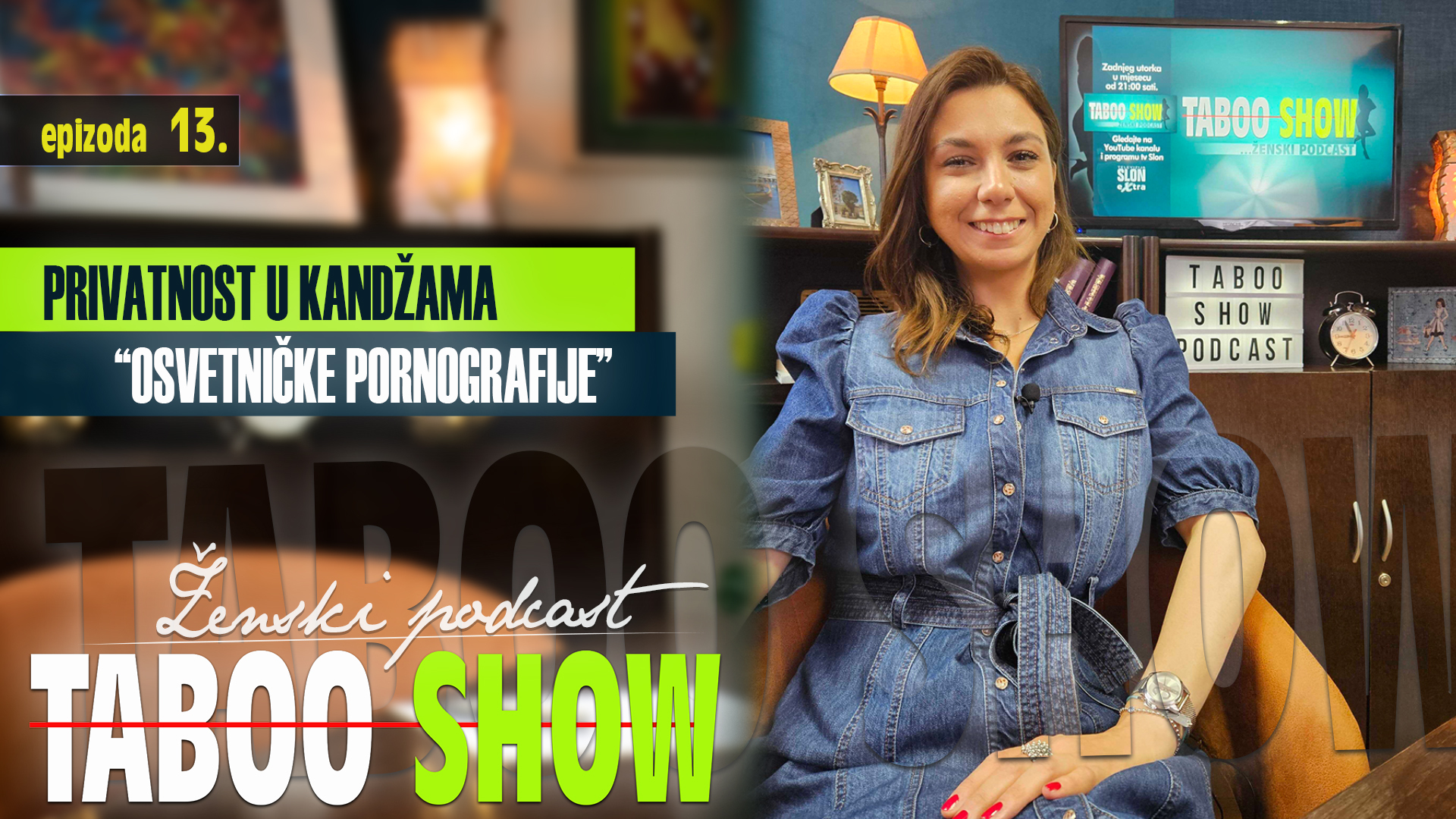 Pravo na privatnost, pravo na seksulanost, diljenje audiovizuelnog materijala bez pristanka, rodno zasnovano nasilje u cyber prostoru i osvetnička pornografija koje je u pojednim državama označena i prepoznata kao krivično djelo, je li osvetnička pornografija dobra definicija, zašto privatnost nije i ne može biti pornografija, zašto je terminologija bitna, o tome govorimo u 13 epizodi podcasta „Taboo Show“. Sagovornica epizode je Aida Mahmutović,  koautorica publikacije „Privatnost nije pornografija“ istraživačica i novinarka Balkanske istraživačke mreže BiH (BIRN BiH) i Detektora.