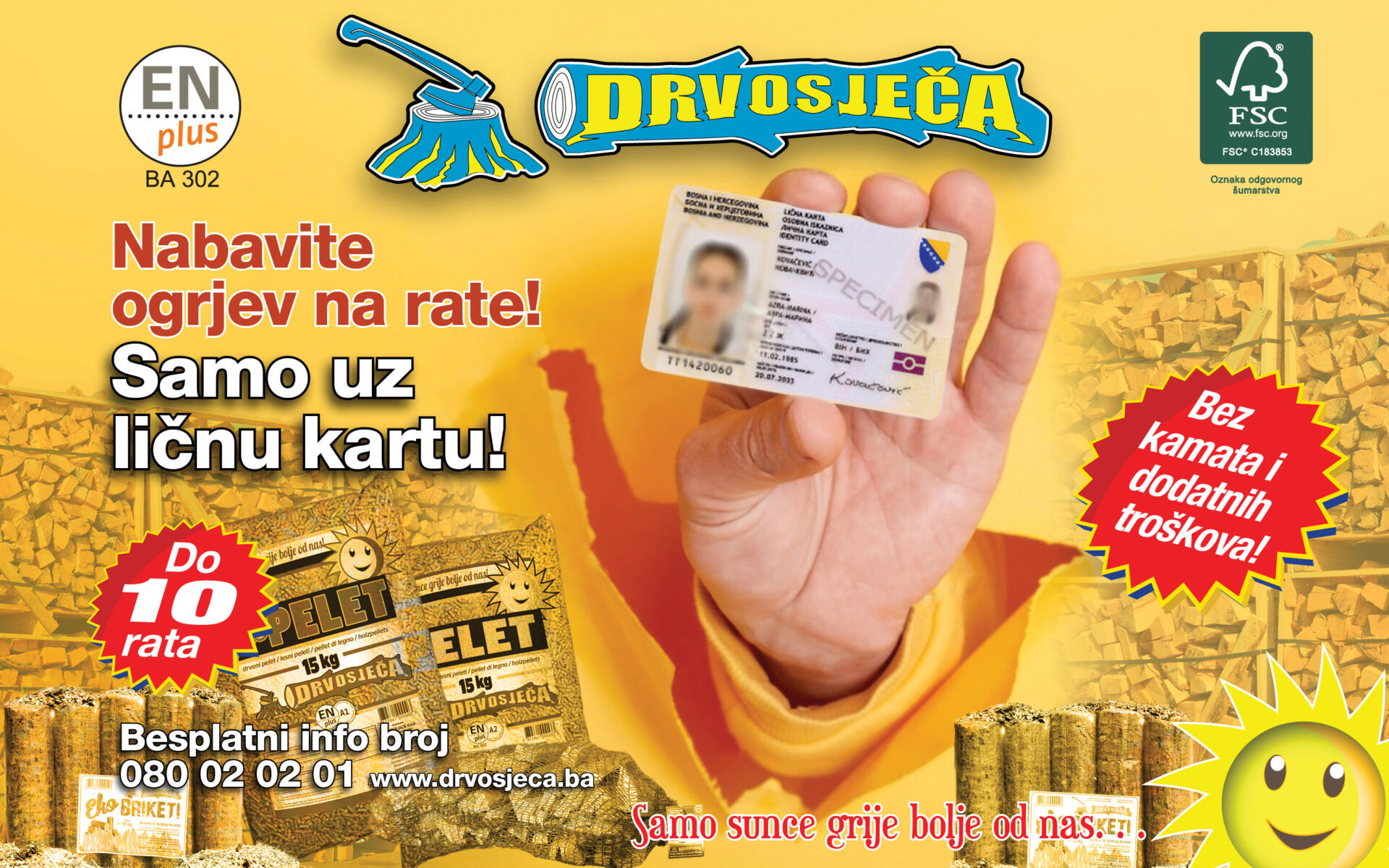 DRVOSJEČA Vam nudi inovativnu i jedinstvenu mogućnost kupovine ogrjeva koja štedi Vaše vrijeme ali i novac. Sve što je potrebno da biste ostvarili kupovinu bilo koje vrste ogrijeva na čak 10 rata jeste da ponesete ličnu kartu, posjetite Vama najbližu podružnicu DRVOSJEČE te da sklopite Ugovor o kupovini ogrjeva.
