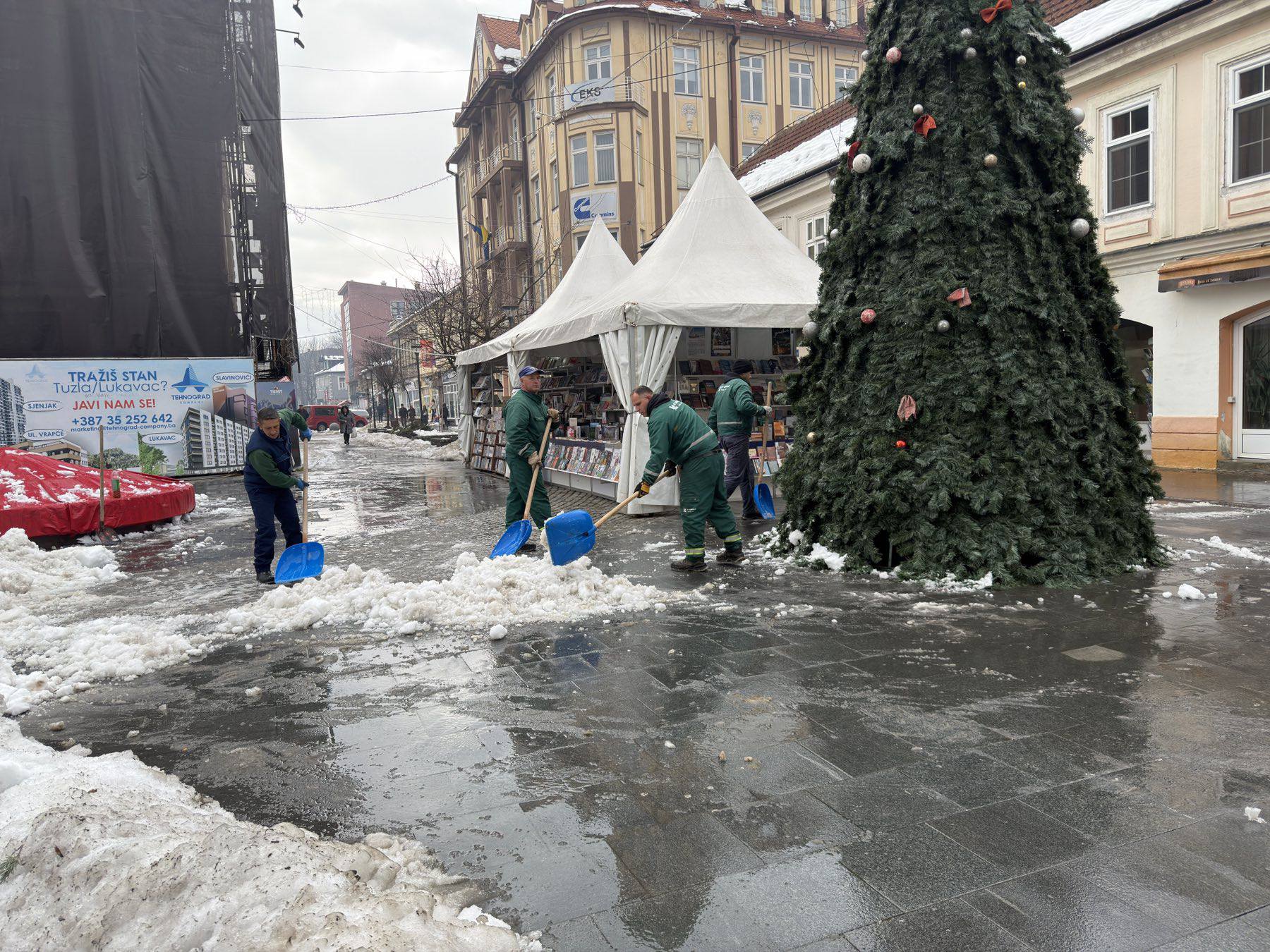 Iz JKP „Komunalac“ Tuzla saopćeno je da Zimska služba nastavlja intenzivne aktivnosti na čišćenju i uklanjanju nagomilanog snijega i leda, s posebnim fokusom na užu jezgru grada, gdje je frekvencija pješaka i vozila najveća.