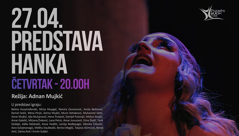 U četvrtak u 20 sati na sceni Pozorišta mladih Tuzle biće izvedena predstava „Hanka“ nastala u produkciji Pozorišta mladih Tuzle u partnerstvu s Udruženjem „Mladi Tuzle“ Tuzla i Srednjom „Savremeno – umjetničkom školom“ Tuzla.