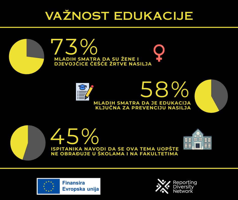 Dodatno istraživanje UN Reporta, provedeno na 637 ispitanika, pokazalo je da se o rodno zasnovanom nasilju i dalje nedovoljno govori, čak 45% ispitanika navodi da se ova tema uopšte ne obrađuje u školama i na fakultetima.