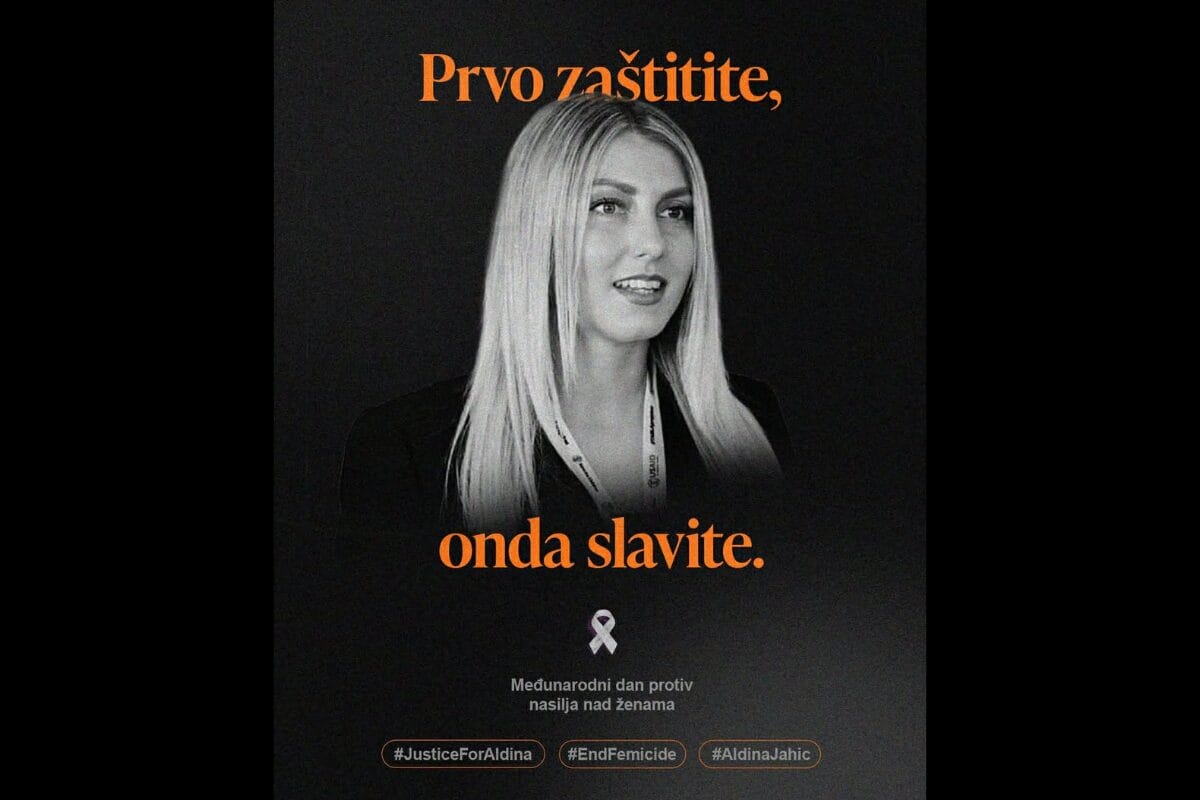 25. Novembar je Dan državnosti Bosne i Hercegovine. To je ujedno i Međunarodni dan borbe protiv nasilja nad ženama. Mi, Aldinini prijatelji, odbijamo slaviti državu koja nije zaštitila Aldinu i koja nastavlja da iznevjerava toliko žena. Želimo da Bosna i Hercegovina bude jača, sigurnija i vrijedna slavlja, a to je moguće samo ako se životi žena shvate sa ozbiljnošću, hitnošću i dostojanstvom koje zaslužuju.