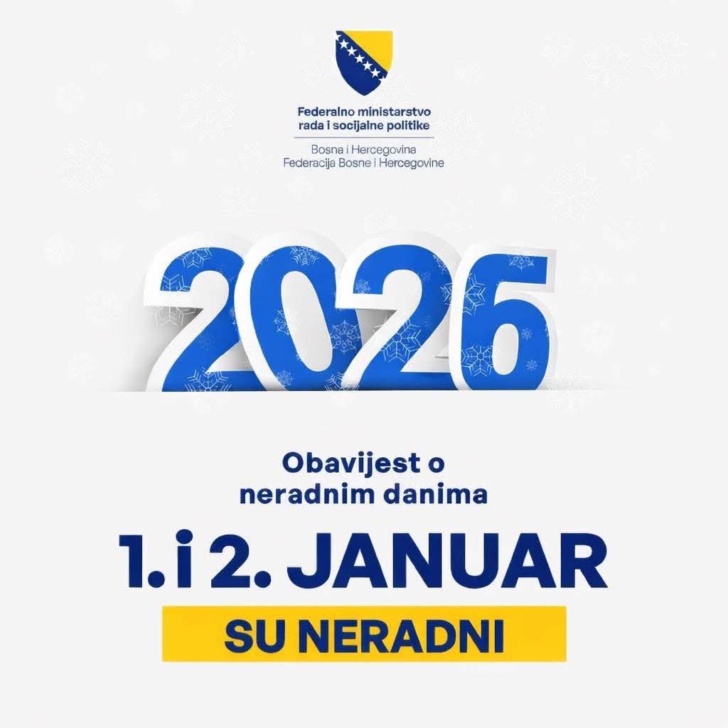 Sindikat trgovine Federacije Bosne i Hercegovine oglasio se povodom velikog broja poruka i upita radnika vezanih za rad tokom novogodišnjih praznika, prije svega za 1. i 2. januar. U prethodnim danima Sindikatu su se javili brojni radnici kojima je najavljeno da će petak, 2. januar, biti radni dan, uz obrazloženje da se čeka neko zvanično odobrenje. Velikom broju zaposlenih, već su dostavljeni i sedmični rasporedi rada u kojima je 2. januar označen kao radni dan.