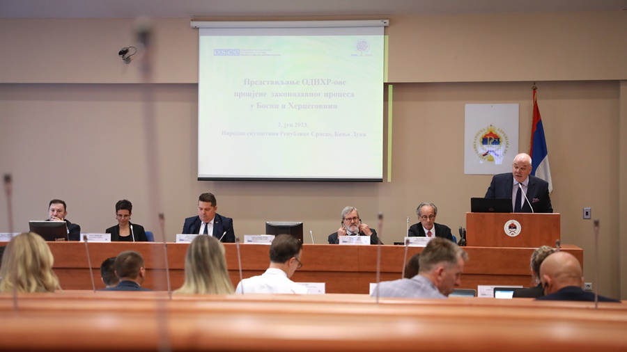 U Narodnoj skupštini Republike Srpske, na sastanku s predsjednikom NSRS-a Nenadom Stevandićem, ambasador Aggeler i predstavnici Ureda OSCE-a za demokratske institucije i ljudska prava (ODIHR) razgovarali su o hitnim komentarima ODIHR-a o izmjenama i dopunama Krivičnog zakonika RS-a kojima se ponovo uvode u zakon uvreda i kleveta kao krivično djelo.