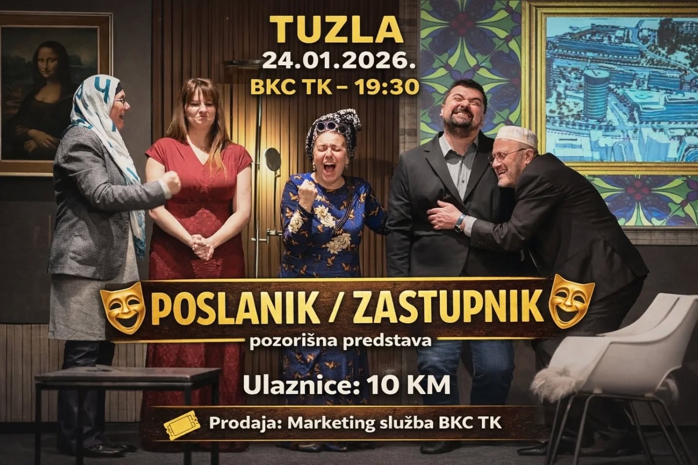 Savremena teatarska produkcija „Poslanik“ uskoro stiže pred tuzlansku publiku, donoseći na scenu BKC-a TK snažnu dozu satire, humora i društvene kritike.