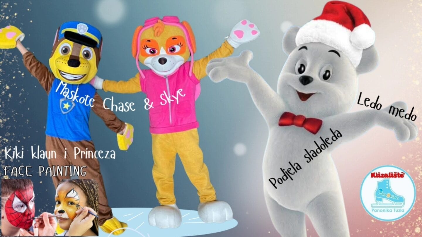 Organizatori najavljuju da posjetioce na ledu očekuju Medo Ledo uz podjelu sladoleda, maskote Patrolnih šapa Chase i Skye, Kiki klaun i Princeza, kao i facepainting za one koji prije ulaska žele nacrtati omiljeni lik iz crtanih filmova.