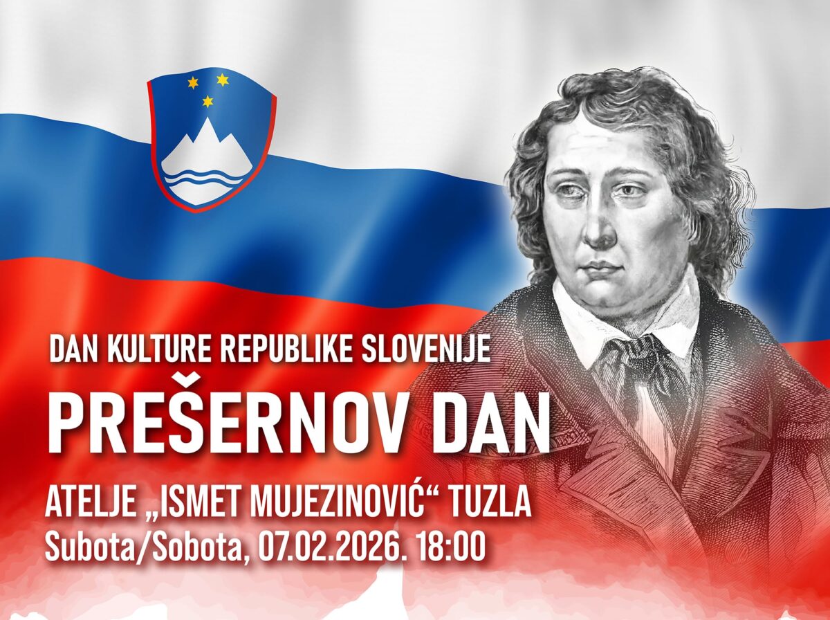 Kulturno-umjetnički program povodom Dana kulture Republike Slovenije, Prešernovog dana, bit će održan sutra u Tuzli u ateljeu “Ismet Mujezinović”, u sastavu Centra za kulturu Tuzla, s početkom u 18 sati.