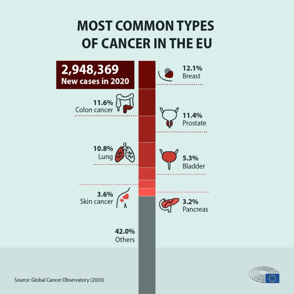 Podaci Globalnog observatorija za rak govore kako je rak dojke najčešći i najzastupljeniji oblik raka u Evropi, zatim slijedi rak debelog crijeva, prostate, pluća, mokraćne bešike, kože, pankreasa te drugi.