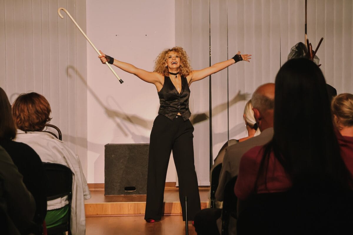 Druga večer XXIII TKT Festa donijela je predstavu „Maske“, izvedbu glumca Dražena Šivaka, koji je snažnom scenskom energijom poveo publiku na putovanje kroz istoriju pozorišta, od antičkih izvorišta do komedije dell’arte. Kroz virtuoznu izmjenu karaktera i otvoreno razotkrivanje glumačkog procesa, Šivak je približio suštinu glumačkog zanata i podsjetio na moć teatra da obrazuje, zabavi i emotivno dotakne gledaoce.