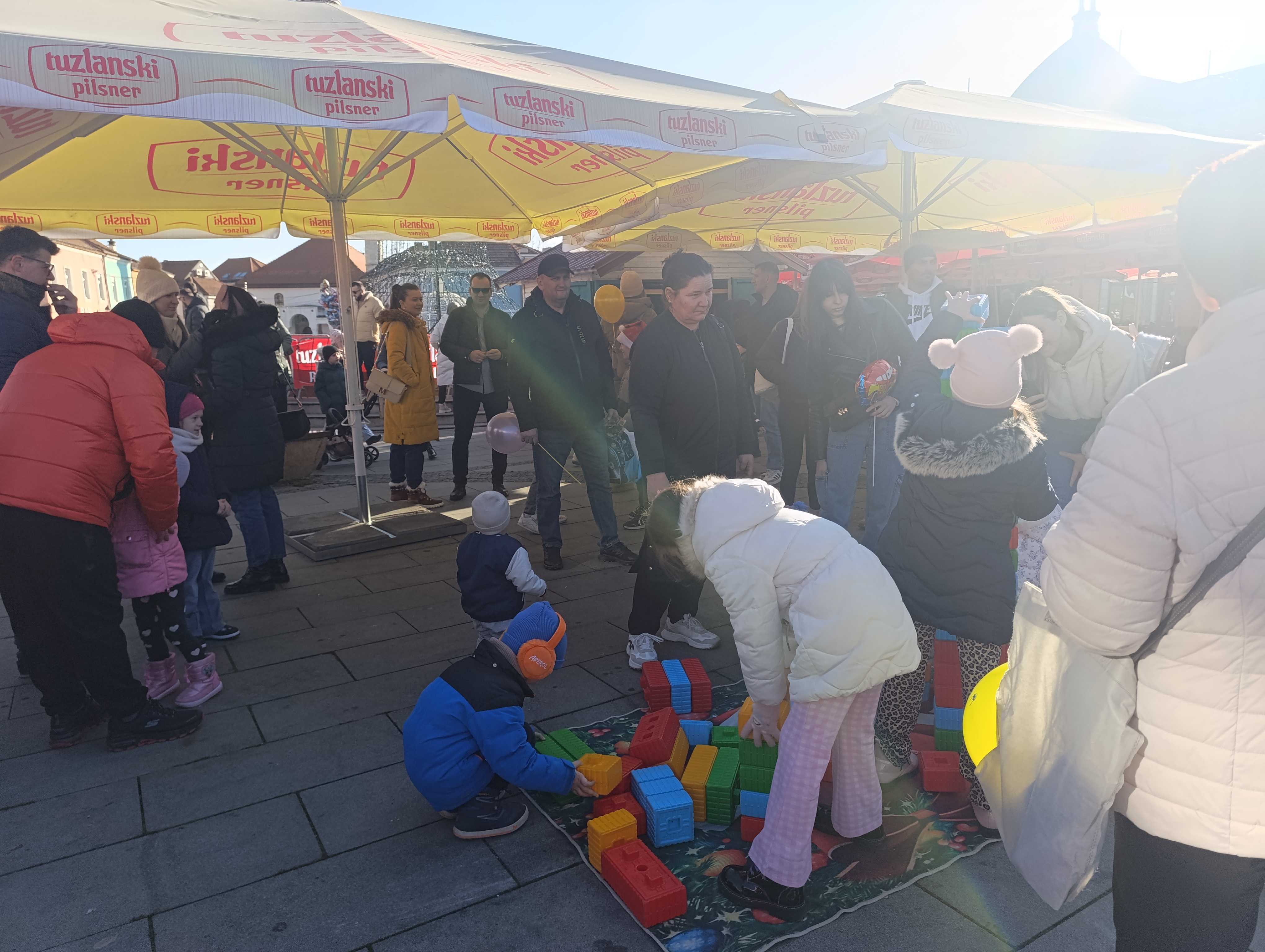 Program je danas okupio veliki broj djece i roditelja. Najmlađe zabavljaju tri Bingo maskote, dok su animatori kroz igre, ples i interakciju stvorili veselu zimsku atmosferu na gradskom trgu.