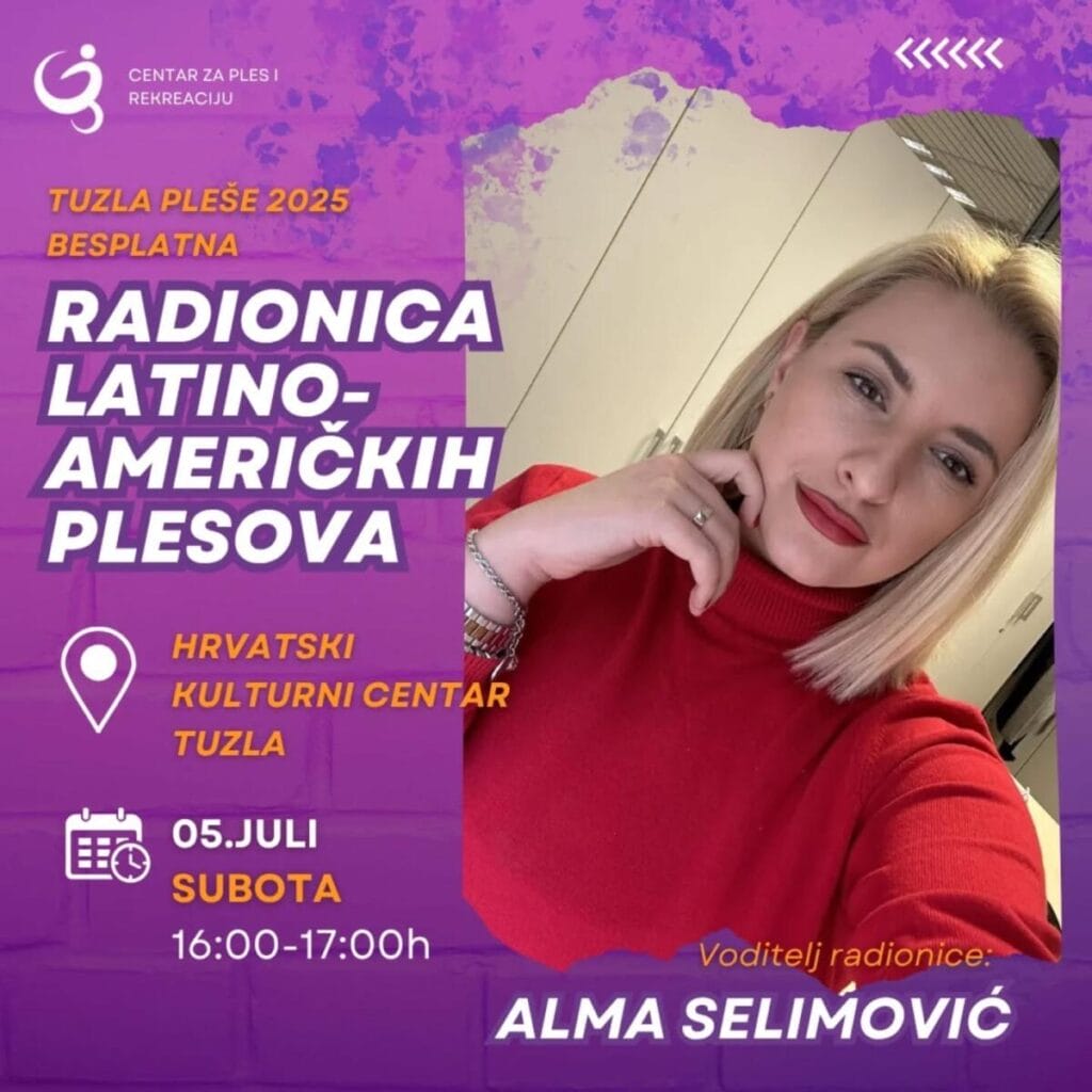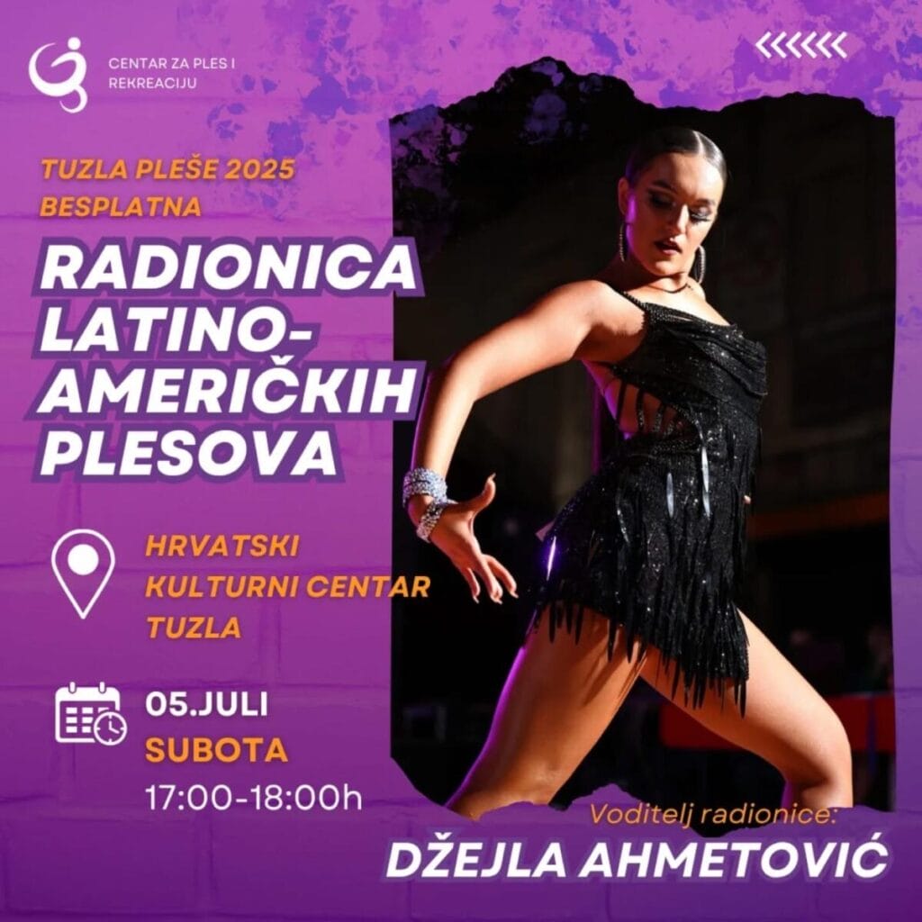 Prijavite se i zaplešite u ritmu Kube, Dominikane i Portorika.“, poručuju iz Centra za ples i rekreaciju Tuzla i podsjećaju da će sve radionice biti održane ispred Hrvatskog kulturnog centra Tuzla, u subotu, 5. jula.