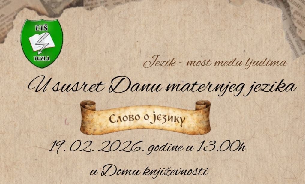 U povodu Međunarodnog dana maternjeg jezika, koji se obilježava 21. februara, učenici Mješovite srednje elektrotehničke škole u Tuzli pripremili su program pod nazivom “Slovo o jeziku”. Manifestacija će biti održana u četvrtak, 19. februara 2026. godine u 13:00 sati u Domu književnosti (Soni Trg 6), u okviru Centra za kulturu Tuzla.