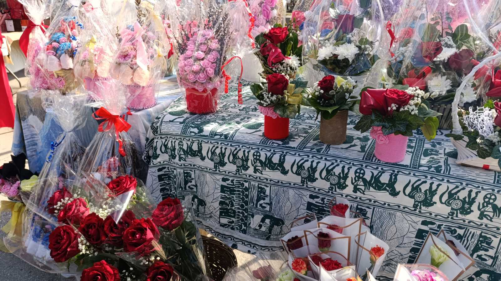 Osim cvijeća, plato ispred TC Sjenjak u Tuzli krase i druge vrste poklona i cvijeće, koje, kako nam priča Behija, ne vene. Radi se o cvijetnim aranžmanima koji se prave od različitih materijala.