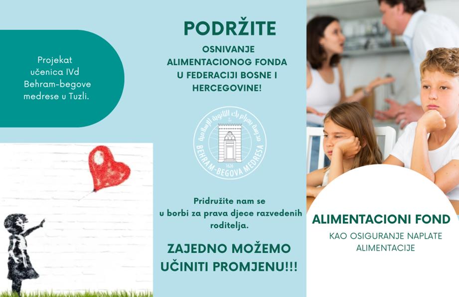 Učenice IV razreda Behram-begove medrese u Tuzli u okviru projekta “Ja građanin” predstavile su rezultate anketnog istraživanja o temi “Neplaćanje alimentacije je krivično djelo”.