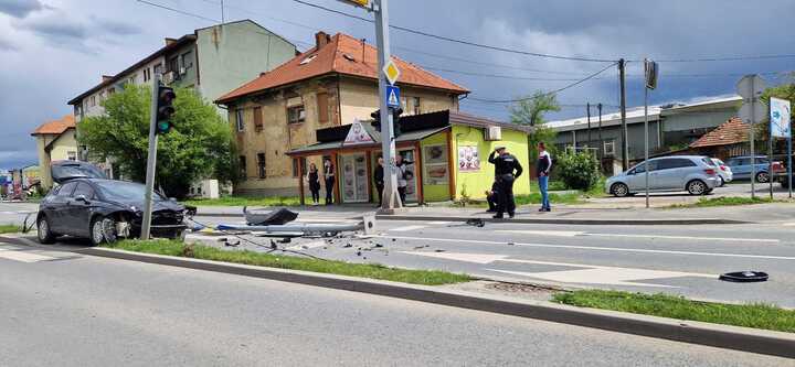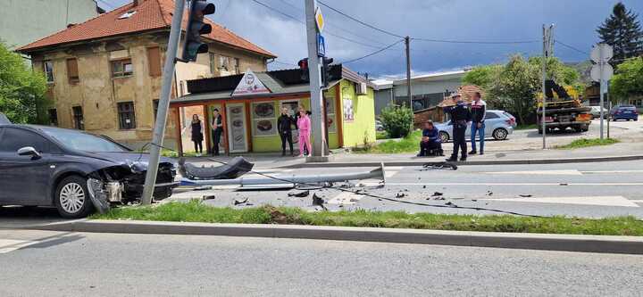 Do saobraćajne nesreće je došlo kada je vozač autombila udario pješaka, nakon čega je izgubio kontrolu i oborio semafor na raskrsnici.