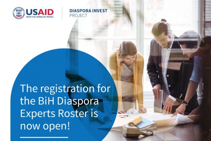 USAID projekt „Diaspora Invest“ je, u saradnji sa lokalnim partnerima, danas raspisao poziv za Roster eksperata/ica iz bh. dijaspore, koji će biti otvoren do 20. juna. Poziv je usmjeren na identificiranje posrednika za izvoz i drugih profesionalaca koji svojom ekspertizom mogu unaprijediti poslovanje domaćih kompanija u BiH. Zainteresovani se mogu prijaviti na linku https://bit.ly/diaspora-experts.