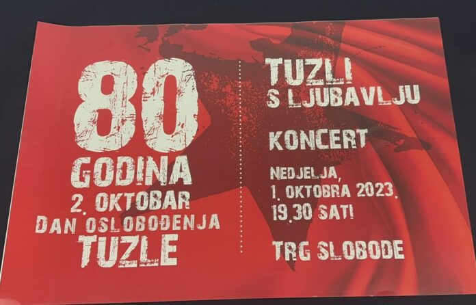 Povodom ovog velikog jubileja, 80. godišnjice od 2. oktobra 1943. godine, kada je Tuzla postala prvi oslobođeni grad u porobljenoj Evropi, Grad Tuzla priprema bogat program obilježavanja a centralni je koncert na Trgu slobode nazvan po jednoj od mnogobrojnih pjesama posvećenih Tuzli, “Tuzli s ljubavlju”.