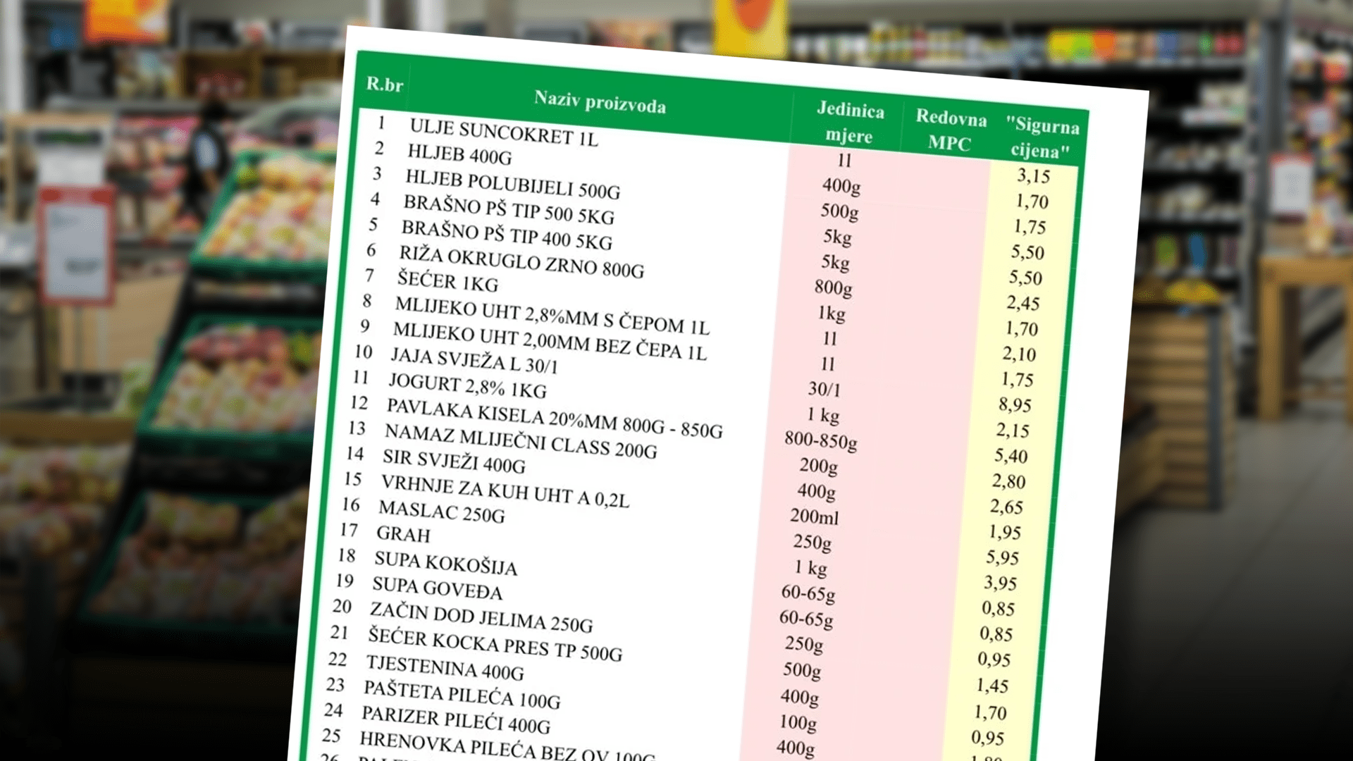 Kako su naveli iz Ministarstva, odluka je rezultat pregovora federalnog ministra trgovine Amira Hasičevića s trgovcima, proizvođačima, potrošačkim udruženjima i sindikatima trgovine. Tokom tri sastanka održana krajem januara dogovoren je zajednički cilj – ublažavanje pritiska na potrošače usljed poskupljenja početkom godine i stabilizacija cijena osnovnih životnih namirnica i higijenskih proizvoda.